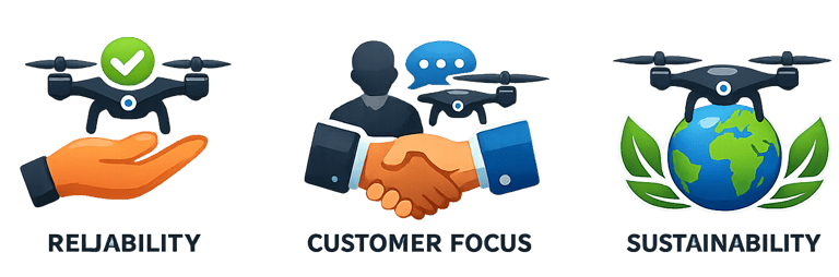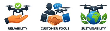 To deliver advanced, reliable, and customized drone solutions that enhance productivity and decision-making through precision agriculture, intelligent surveying, and scalable UAV technologies, while supporting national initiatives like Make in India.